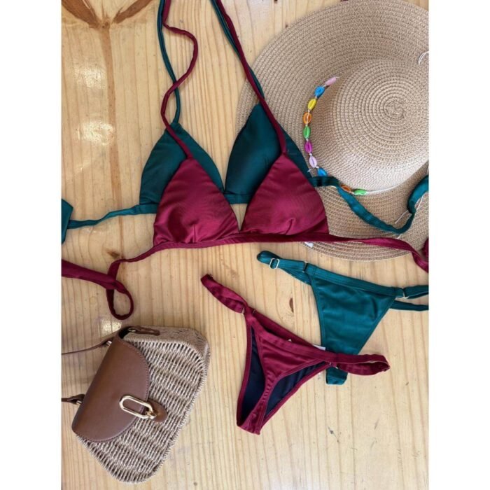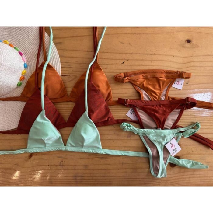 Calcinha de regulagem nas laterais, mais composta na frente e modelo fio na parte posterior.