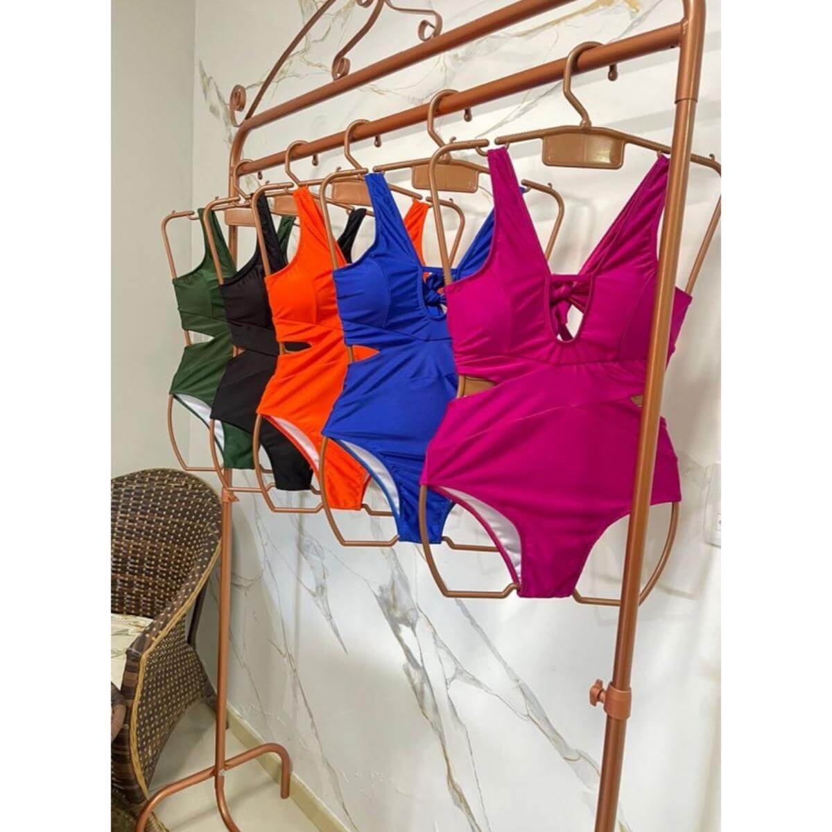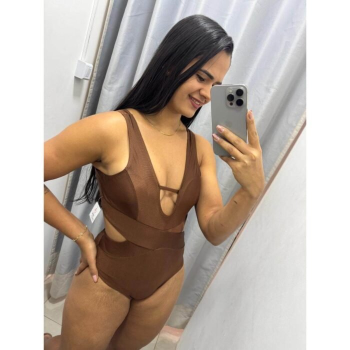 Todo forrado, possui detalhes de amarração nas costas e transpassado frontal.