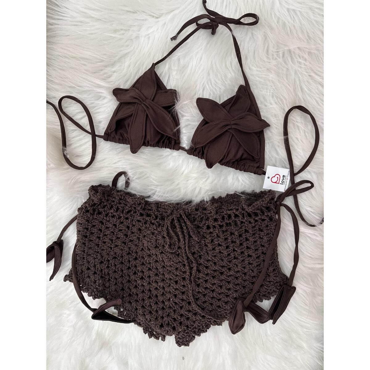 Saída toda no crochê, feito a mão, possui amarração na cintura.